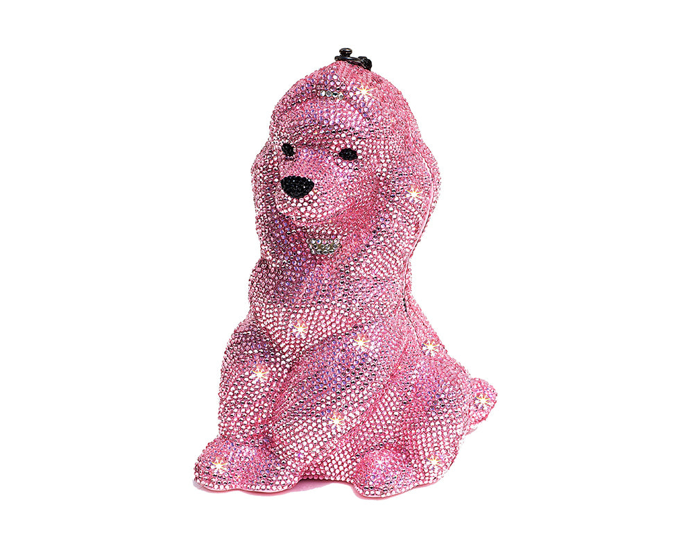 Named after Timmy’s beloved dog, this “Art to Wear” handbag dazzles with over 7,000 hand-applied Swarovski crystals. With its sculptural silhouette, satin-lined interior, and signature U-lock closure, Madame Juliette is a true collectible — where glamour meets craftsmanship