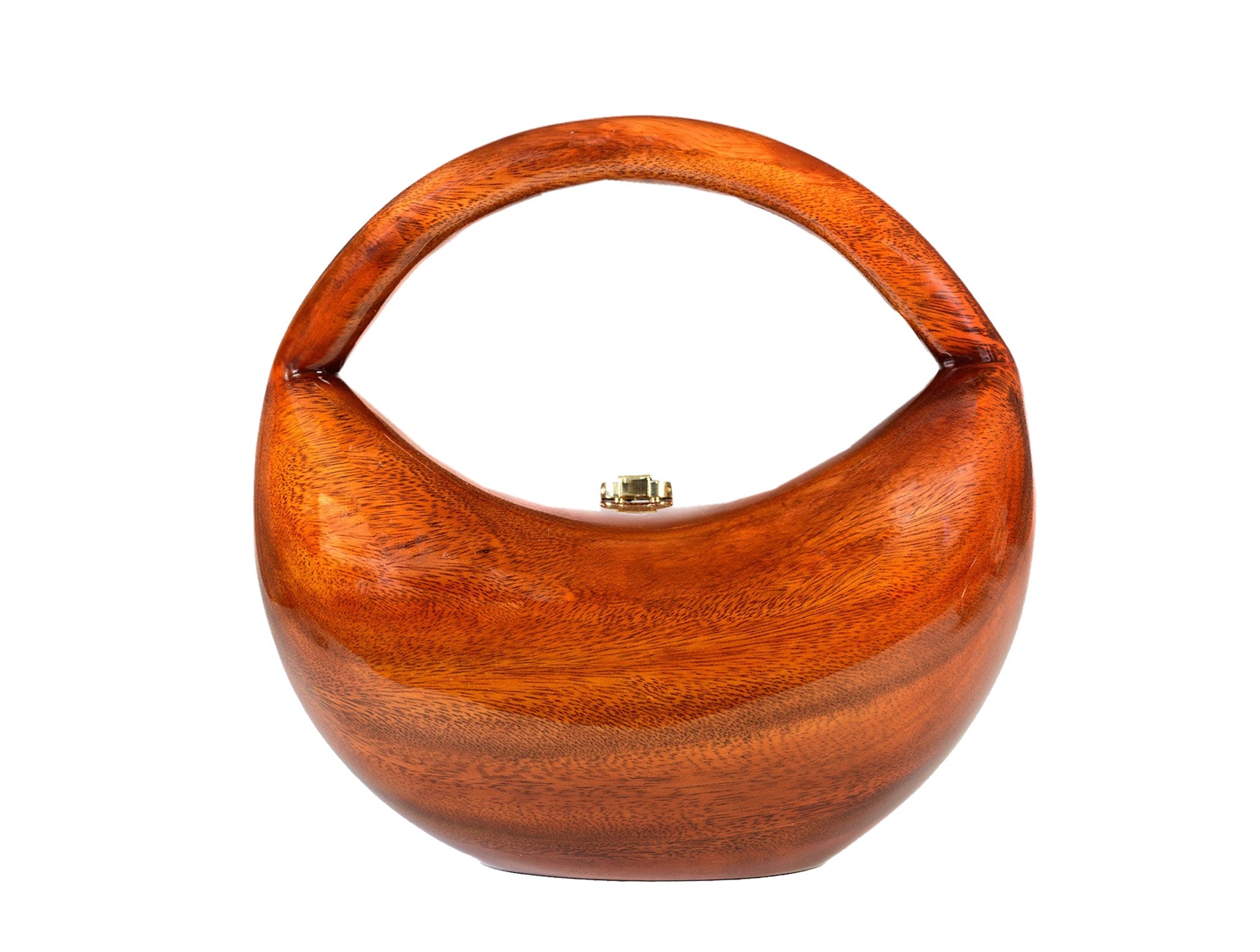 Timmy Woods Exquisite Handbag – Hand-Carved Acacia Wood Half-Moon Clutch