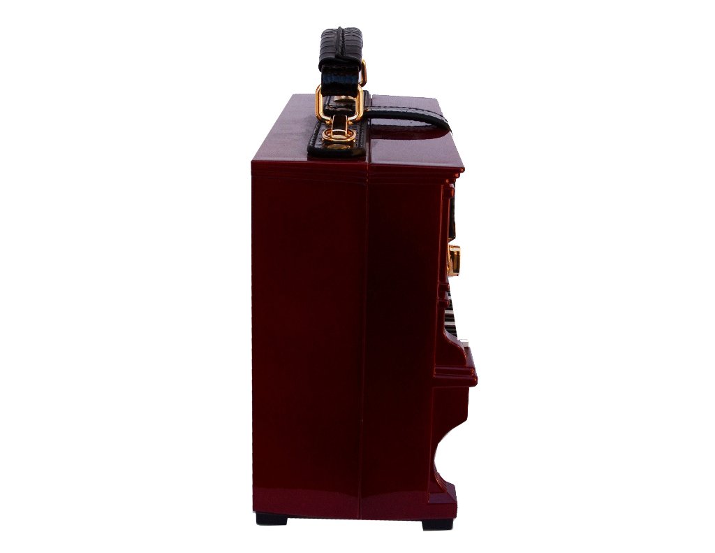 Introducing a beautiful Timmy Woods Beverly Hills masterpiece—an elegant top-handle bag shaped like a grand piano, exquisitely crafted with meticulous attention to detail. Each piece is created using refined artisan techniques and constructed from durable, hardened man-made materials that ensure both longevity and standout style.