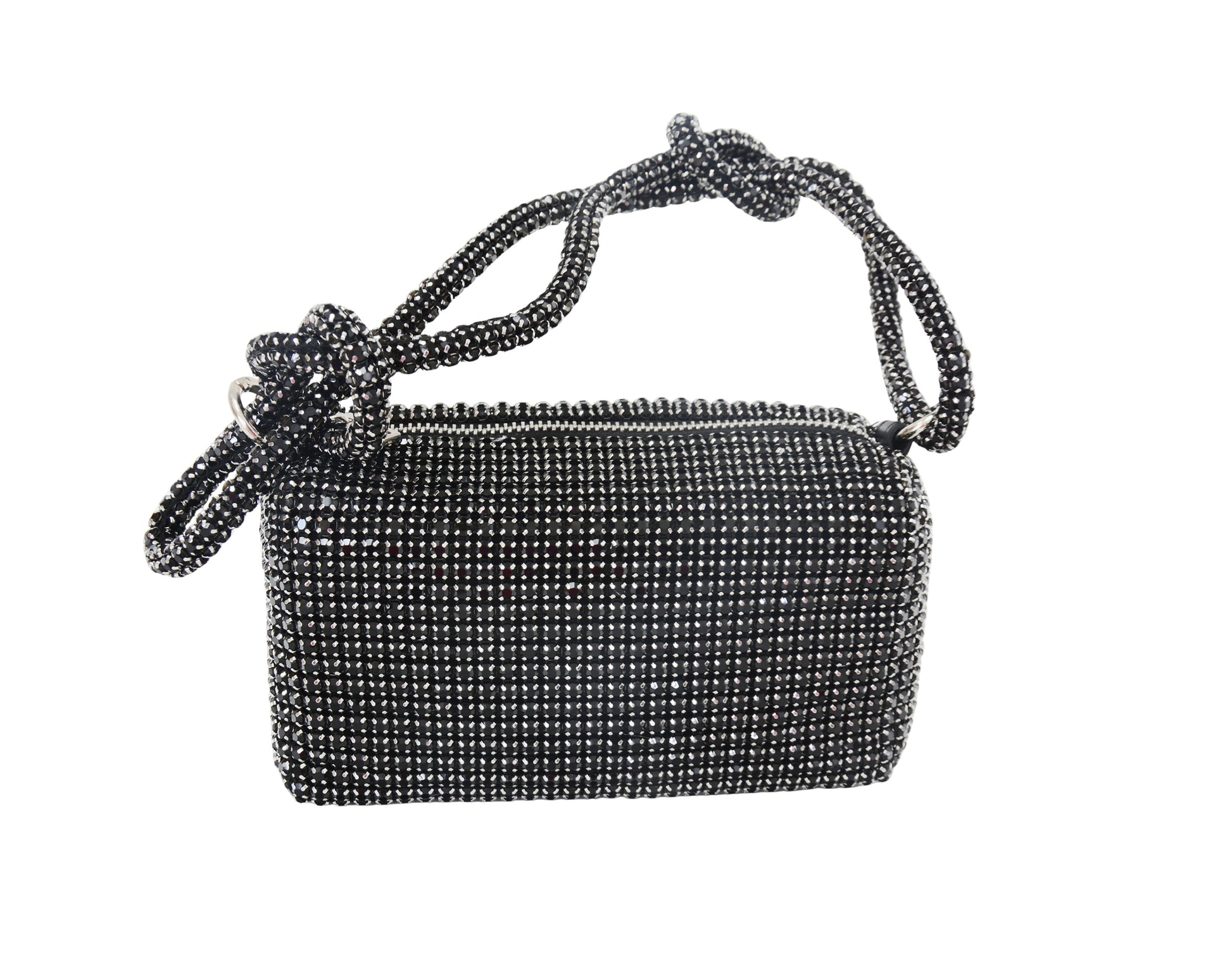 Timmy Woods Beverly Hills "Lolita" Black Rhinestone Embellished Top Handle Bag