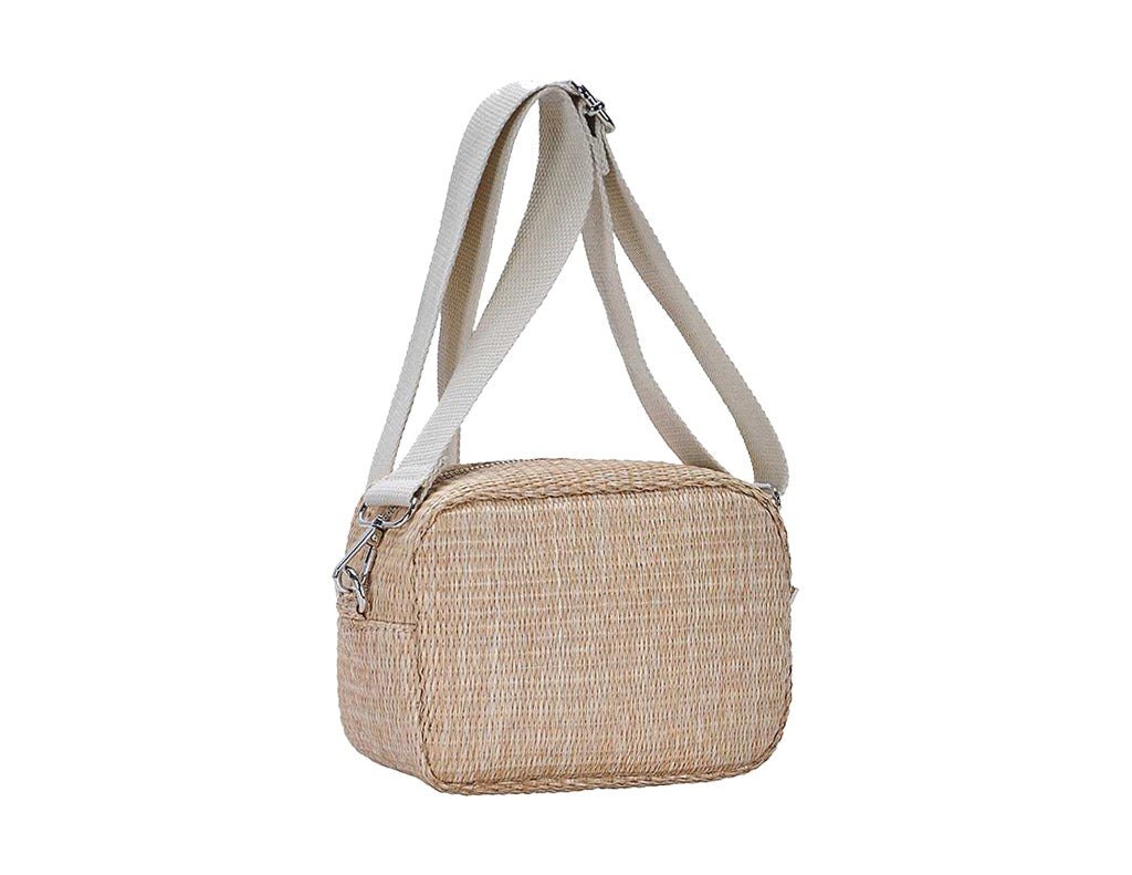 Natural Woven Triple Banana Print Blush Crossbody Bag.