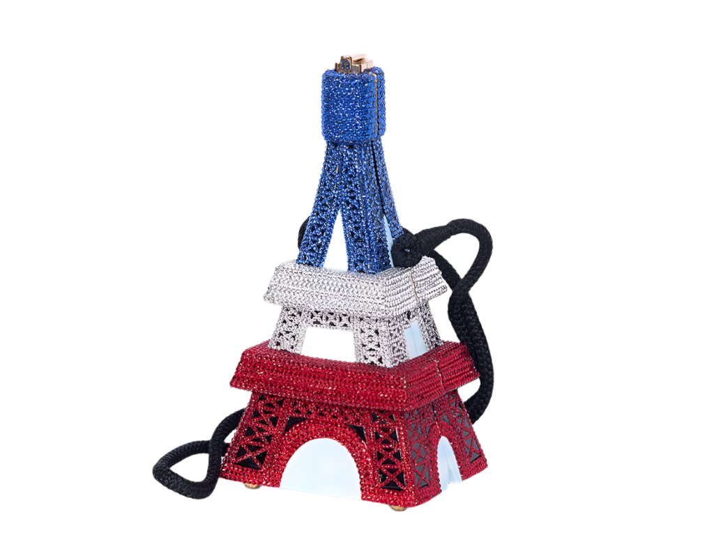 This handbag design honors Le Quatorze Juillet, or July 14th, which commemorates the French holiday Bastille Day, or La Fête Nationale, and harkens the phrase “Vive le 14 Juillet!”