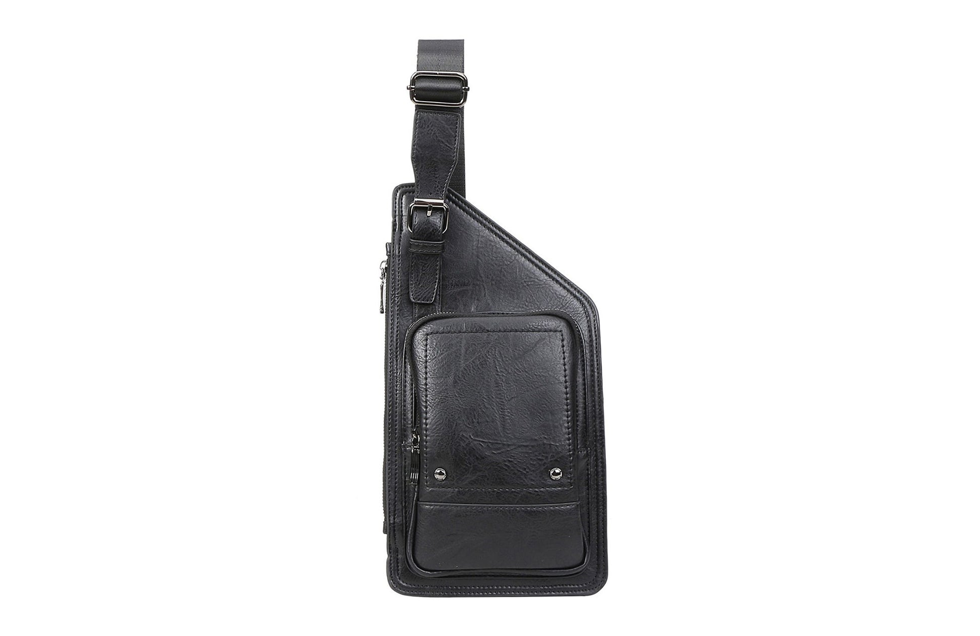 Crossbody bag with long hidden zipper for documents on the left side of the bag. Front and Center of the Sling Bag are 2 Zipper Pockets and a Geometric Flap for your stash. There are built in safety features by wearing a sling bag.