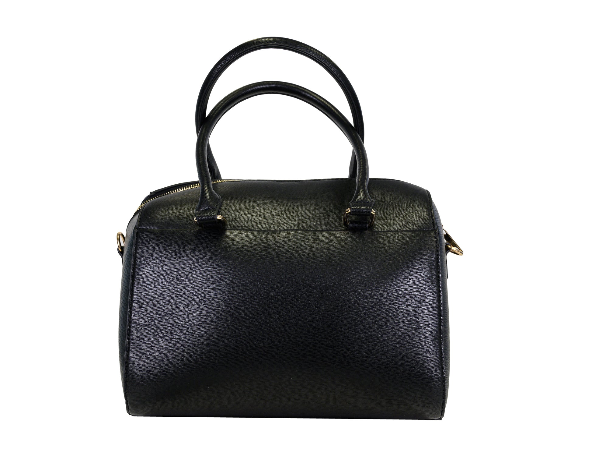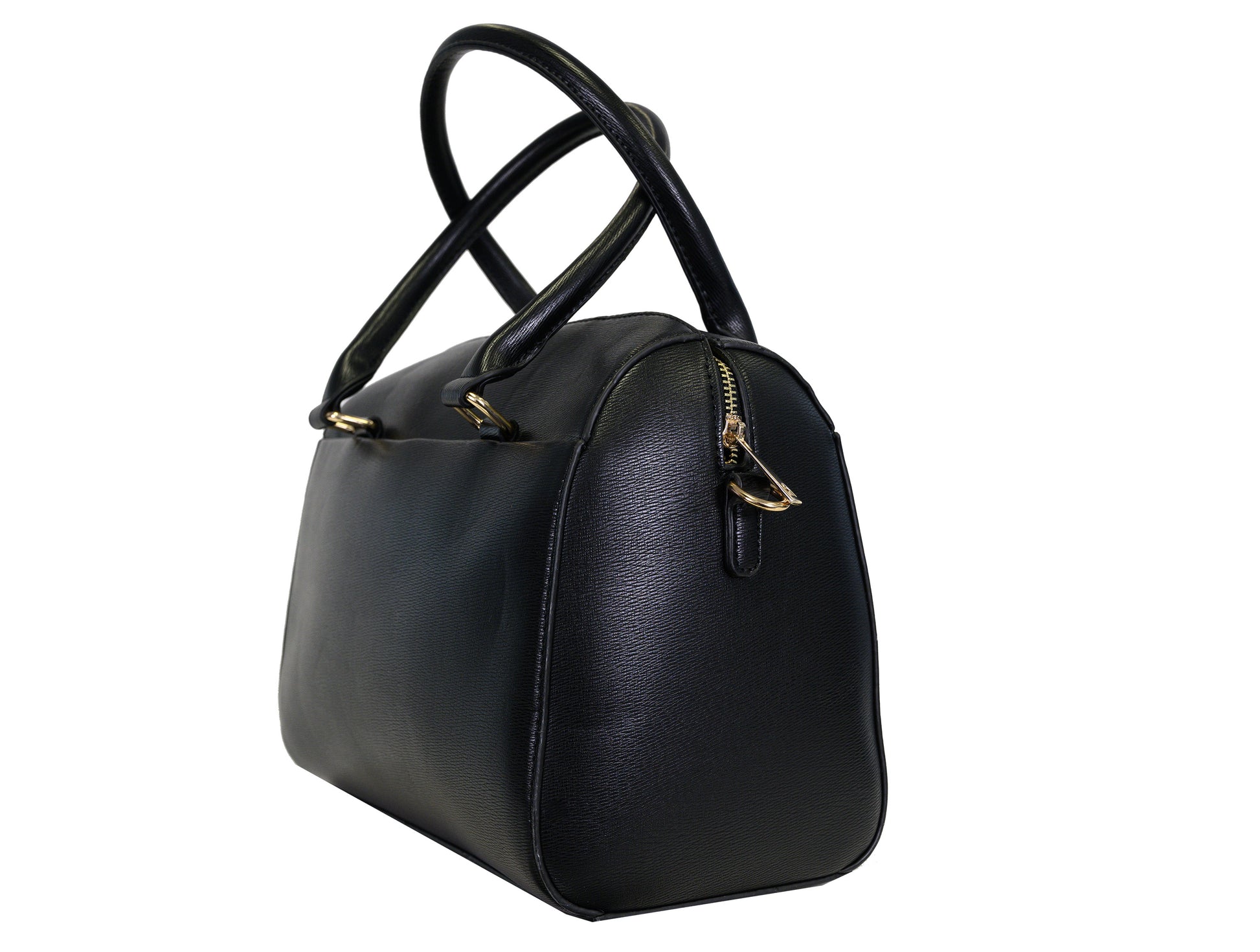 Equipped with a protective metal foot base, ensuring durability and keeping the bag upright when set down.