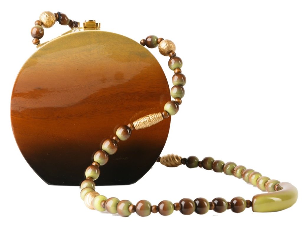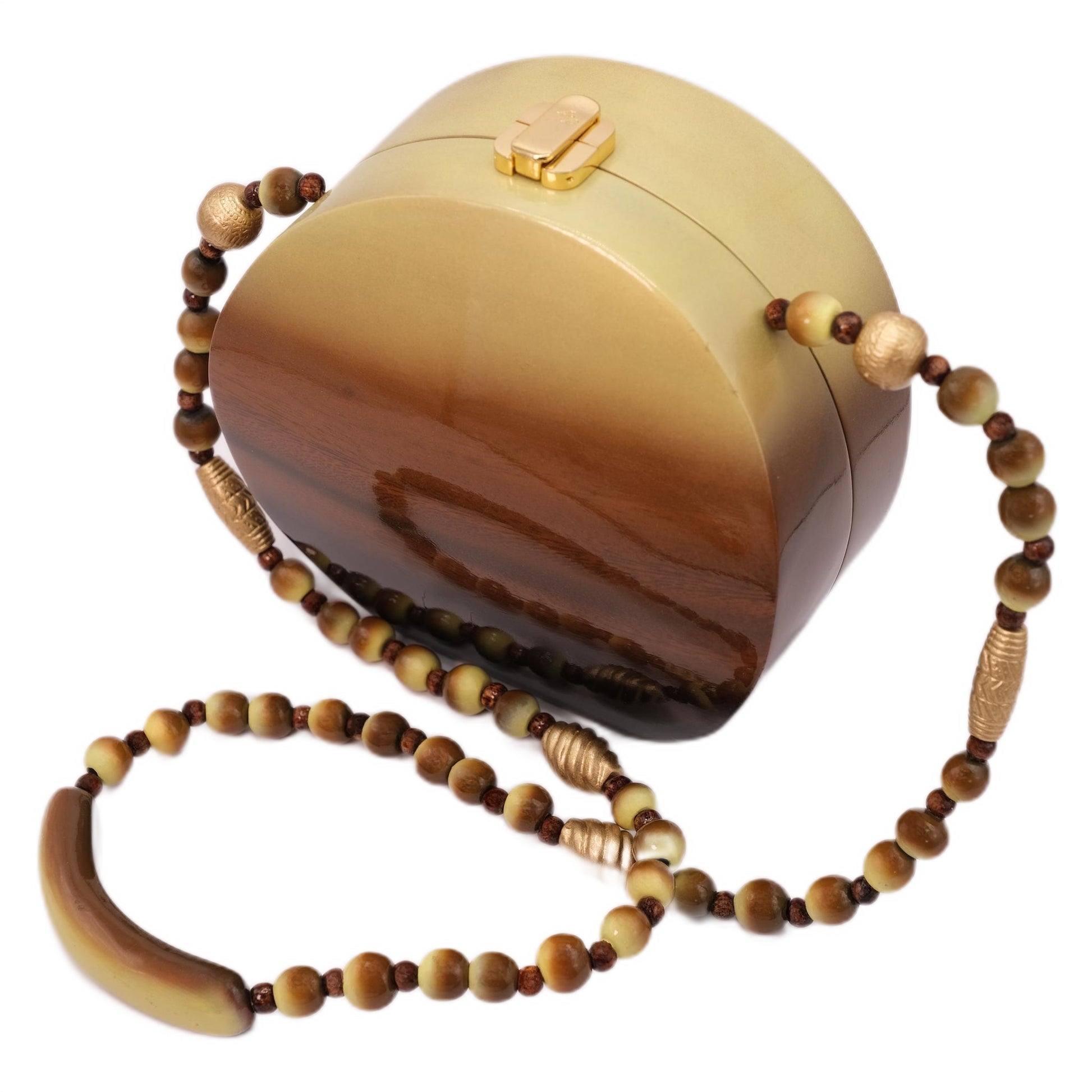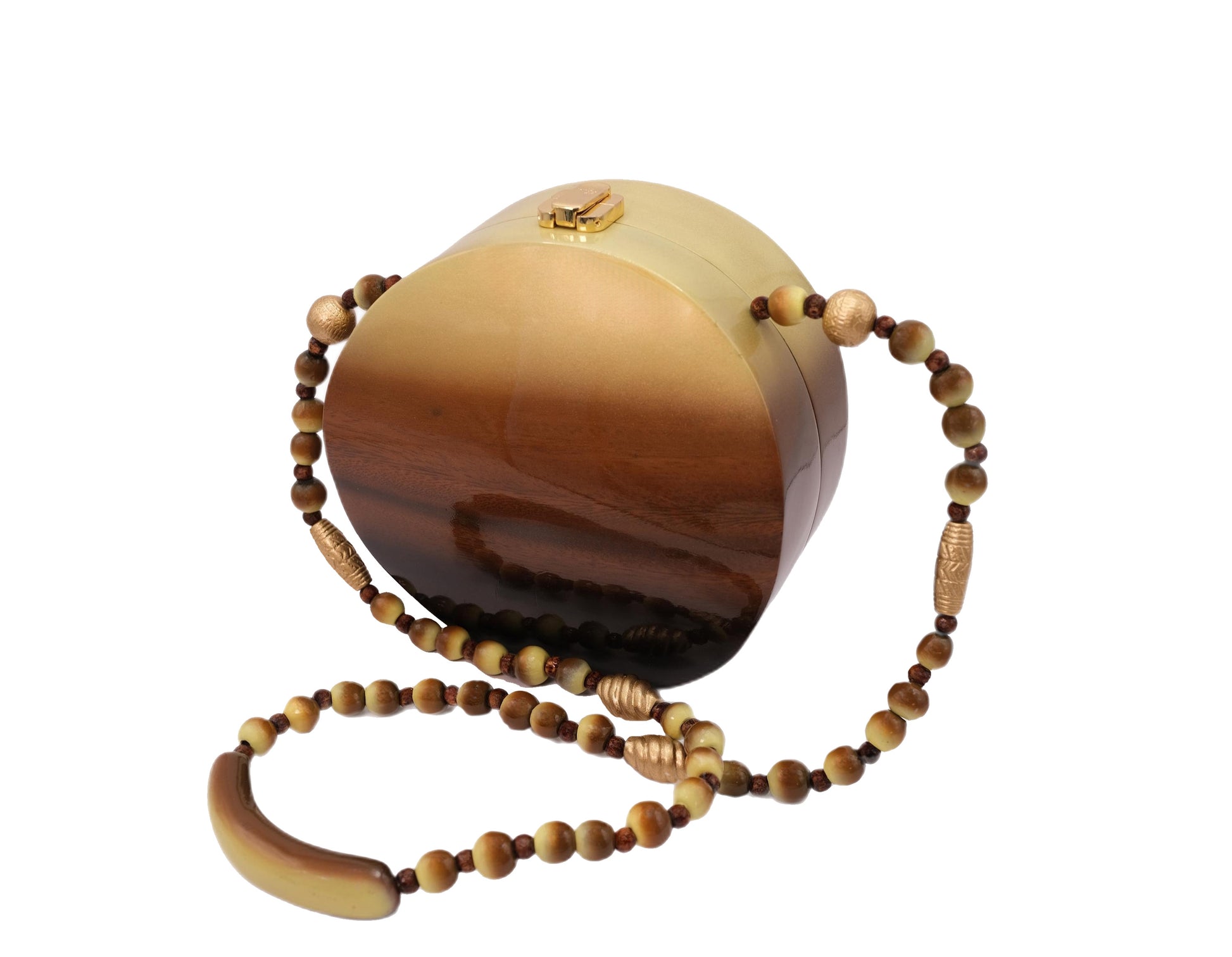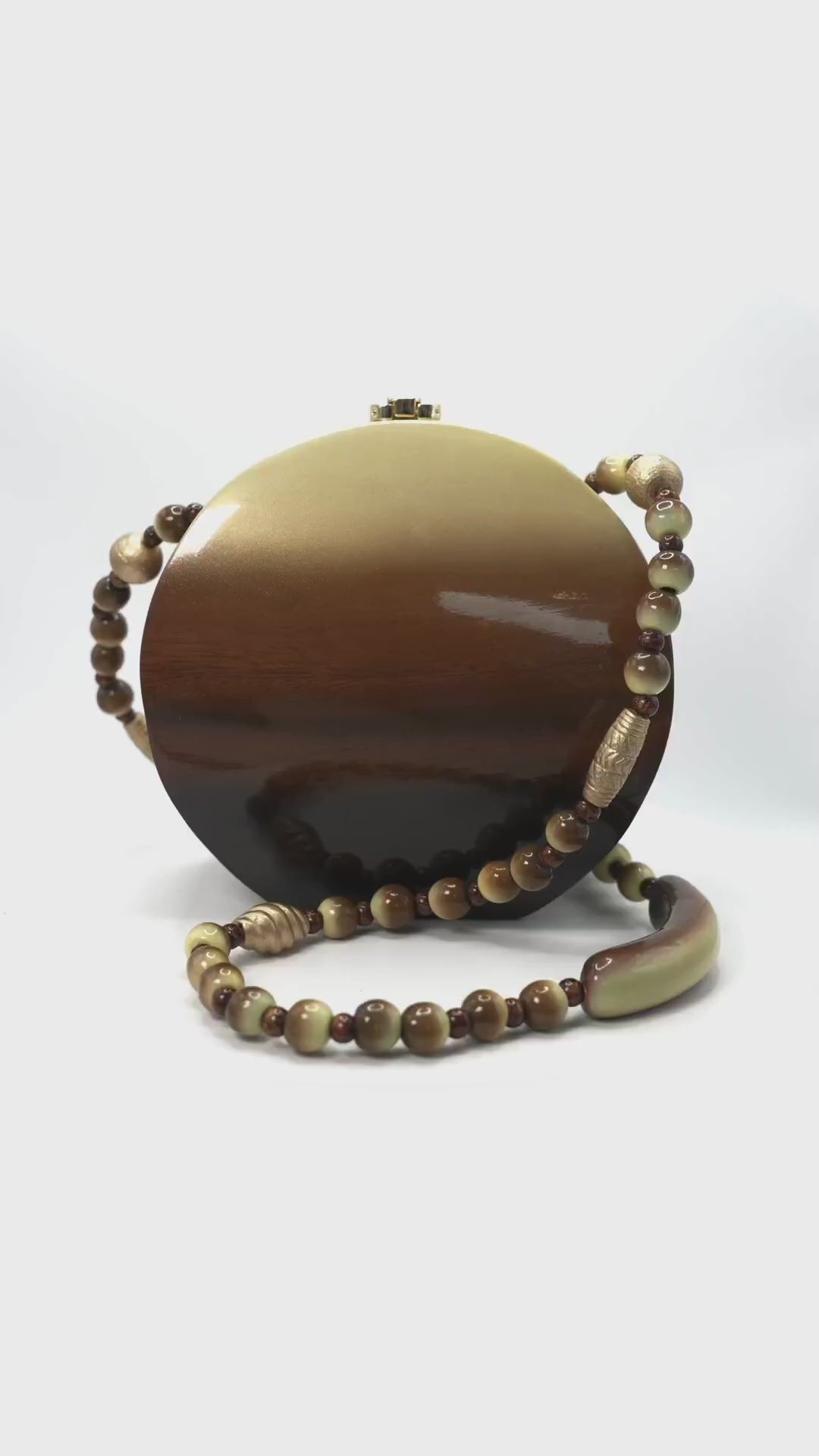 This Timmy Woods Collectible Handbag is a true work of art, skillfully crafted for the discerning collector. Its distinctive refracted circle shape offers an innovative and modern twist on traditional handbag design, creating a striking visual appeal. Handcrafted with carved Acacia wood, each piece is unique, showcasing the natural beauty of the wood with intricate detailing.