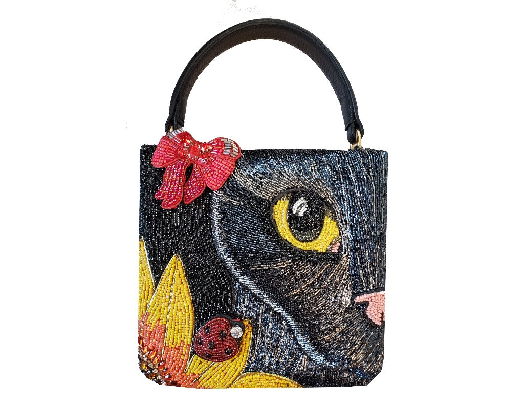 This handbag is hand beaded with a snap closure for a stunning finishing touch. Its compact dimensions of 7" H x 7" x 3" D make it the perfect accessory for any occasion. Expertly crafted with a timeless design, the Elona Cat handbag adds a touch of luxury to any ensemble. Provide both versatility and elegance, making it the perfect addition to your wardrobe.