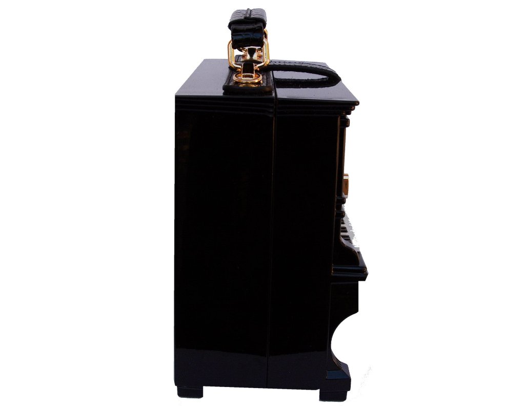 The Elton Black Piano Handbag is a sophisticated and stylish accessory, designed with both form and function in mind.