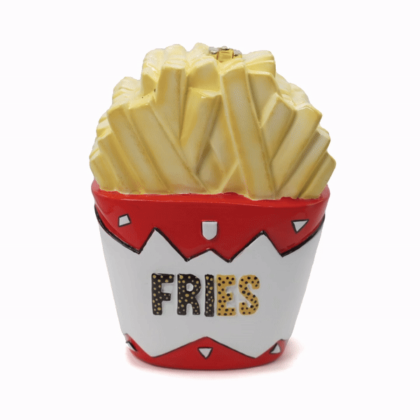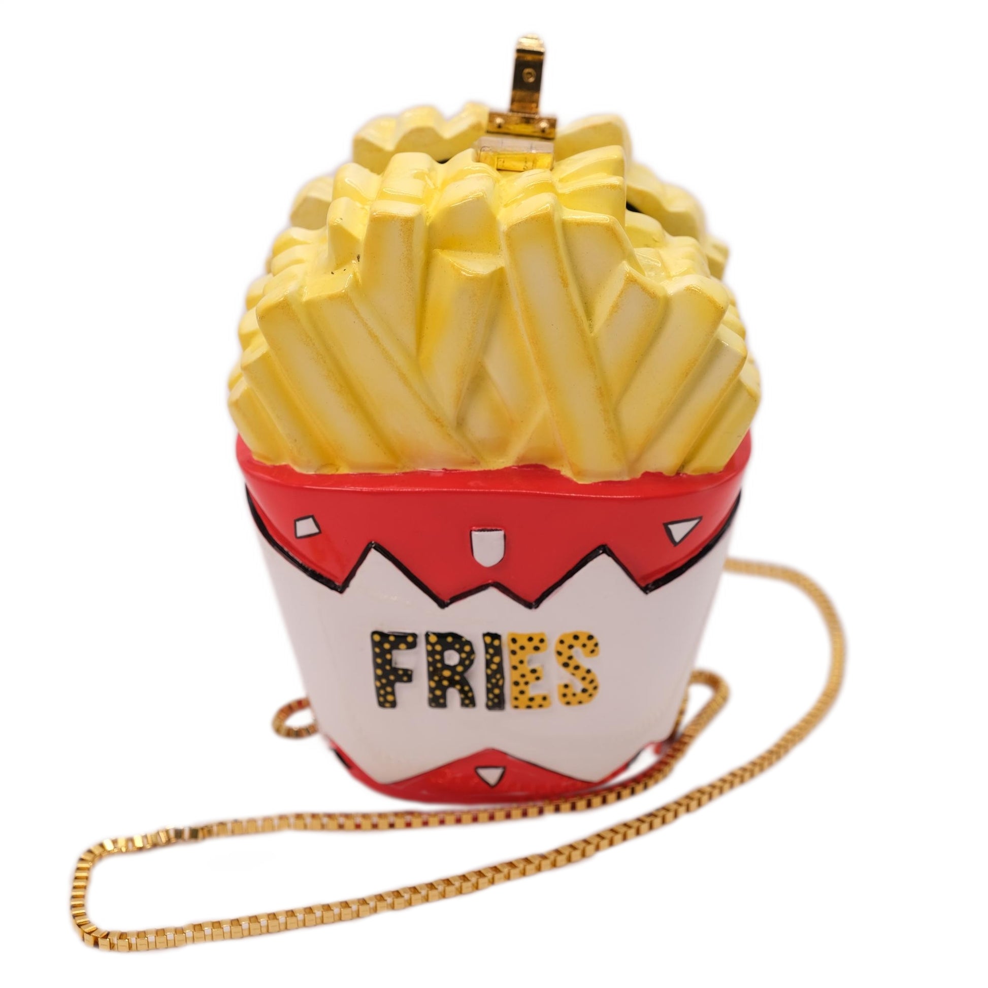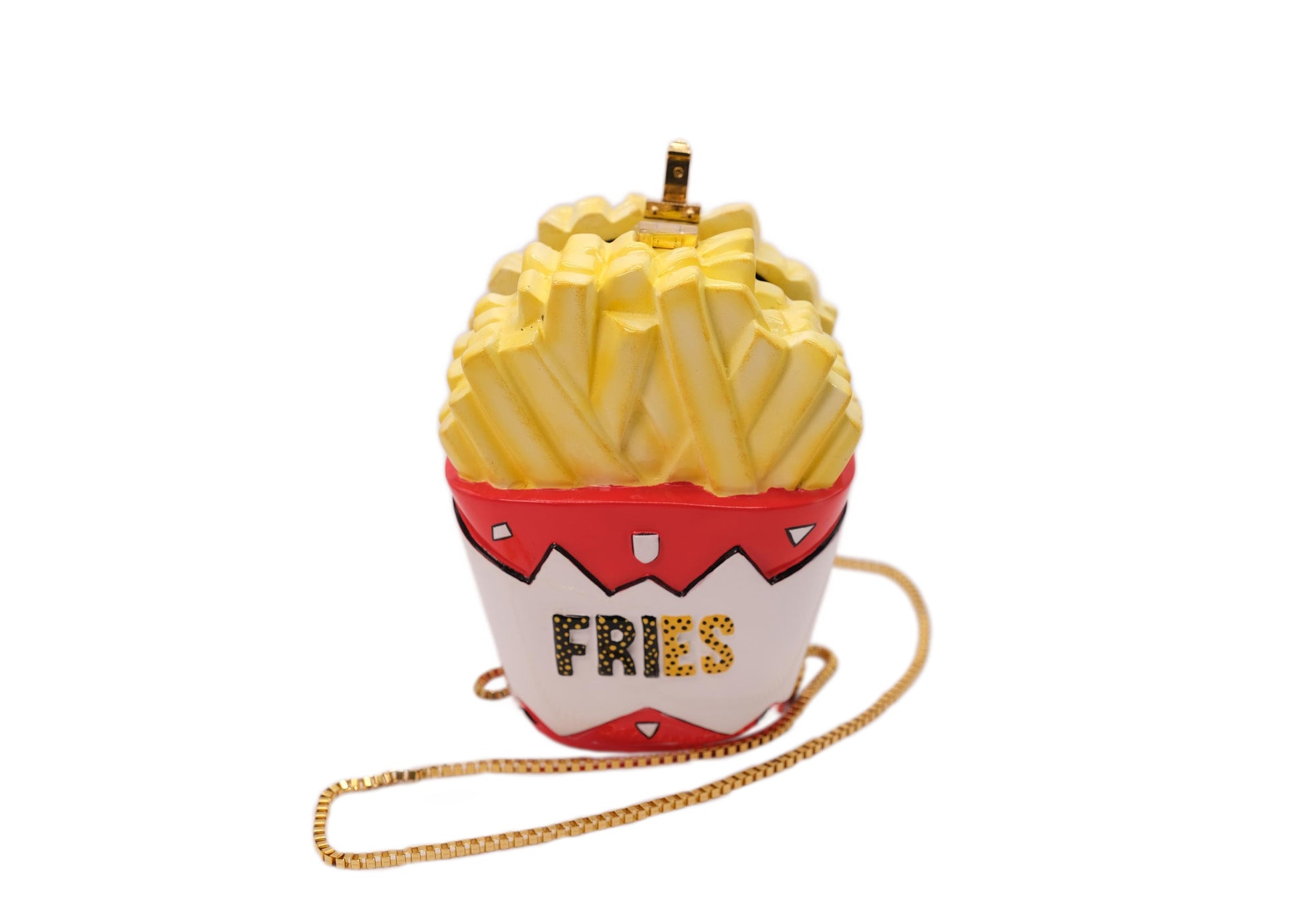 To Be Talked About Pop Art Handbag, Hand Carved of Acacia Wood, Drop In Chain, Hand Painted, TW Lock, Holds most Cell Phones. Dimensions: 7" H x 5" W x 3 1/2" D.