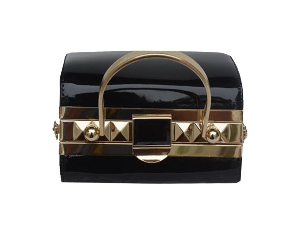 GIANNA – BLACK Plexi Box Style perfect Size Sophicated pyramid details. Top Swinging Handle.