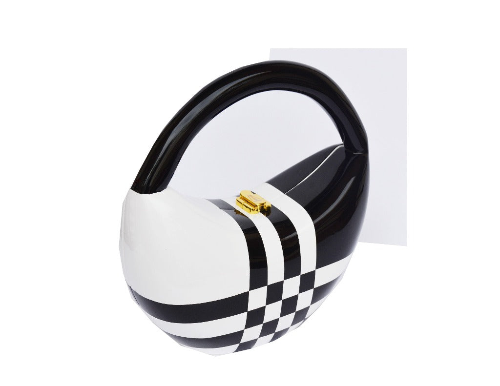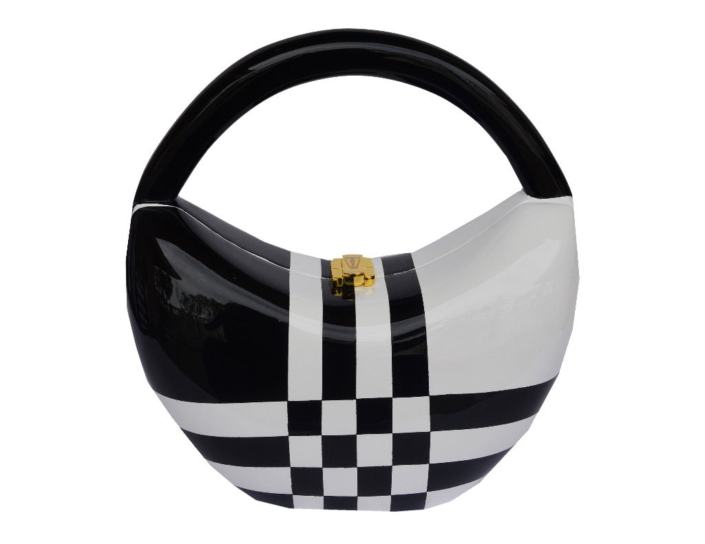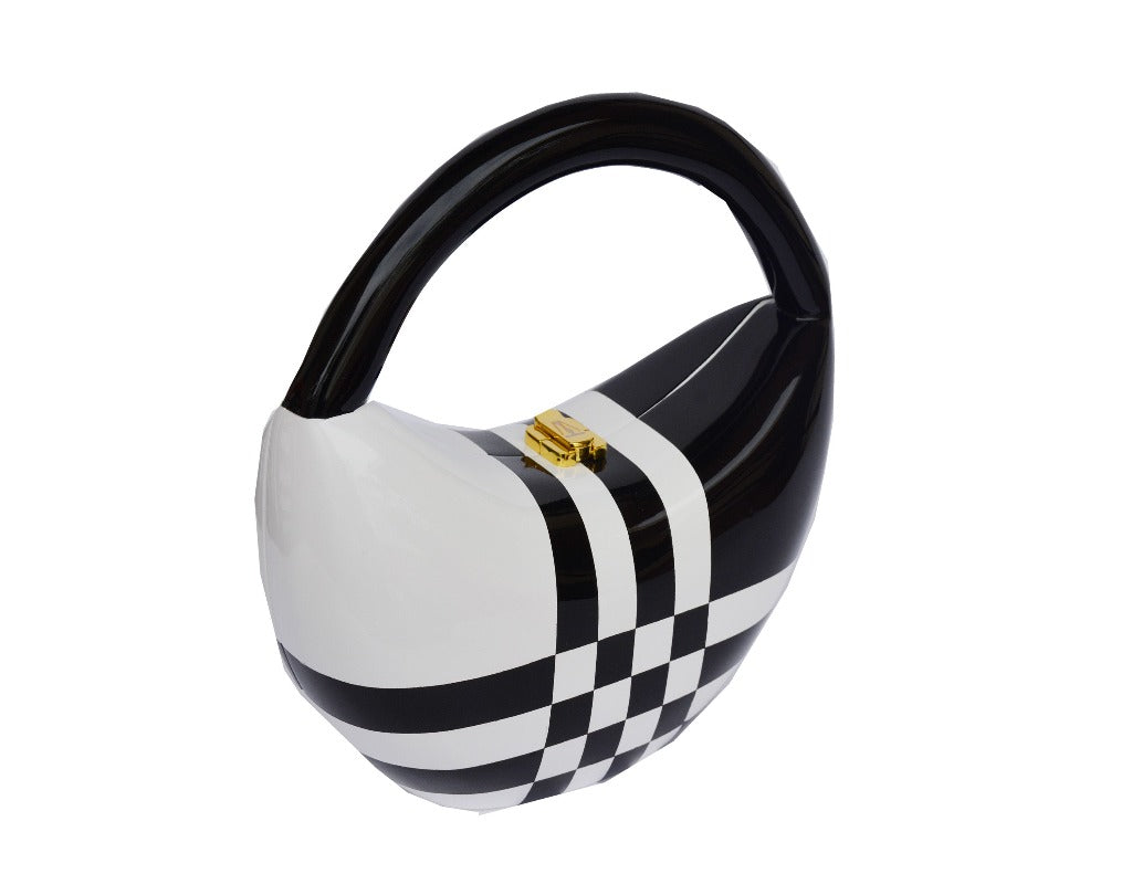 Introducing the Harper Sculptured Wooden Handbag, a true masterpiece that blends craftsmanship, art, and luxury. This stunning handbag features a series of intricately hand-painted squares and lines, each stroke adding to its unique beauty. The sleek black top handle offers a touch of sophistication, while the innovative TW Lock ensures both security and elegance.
