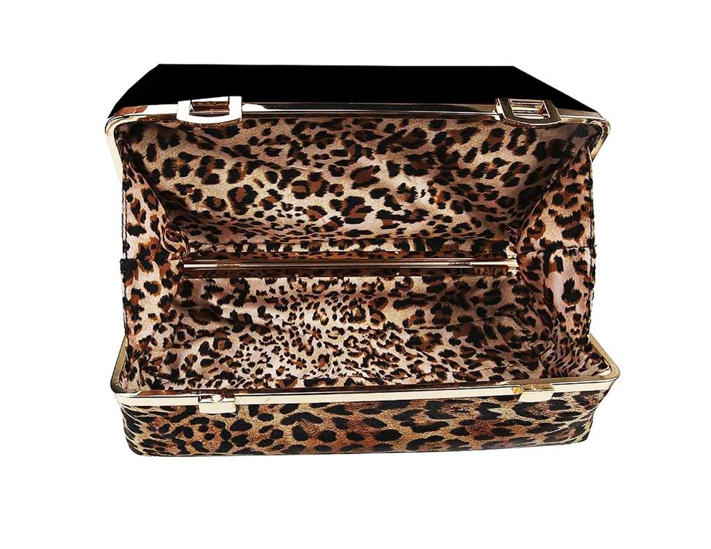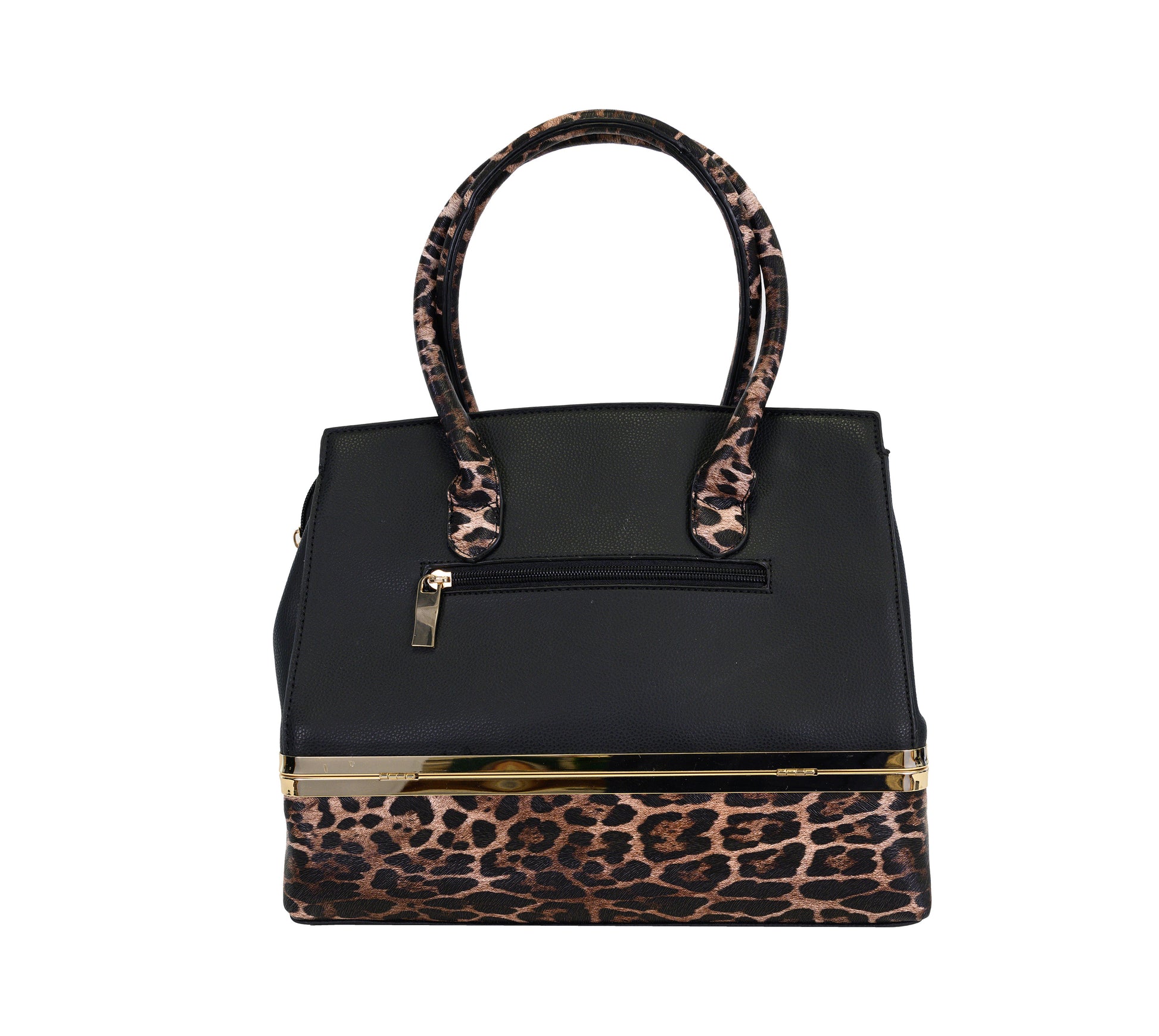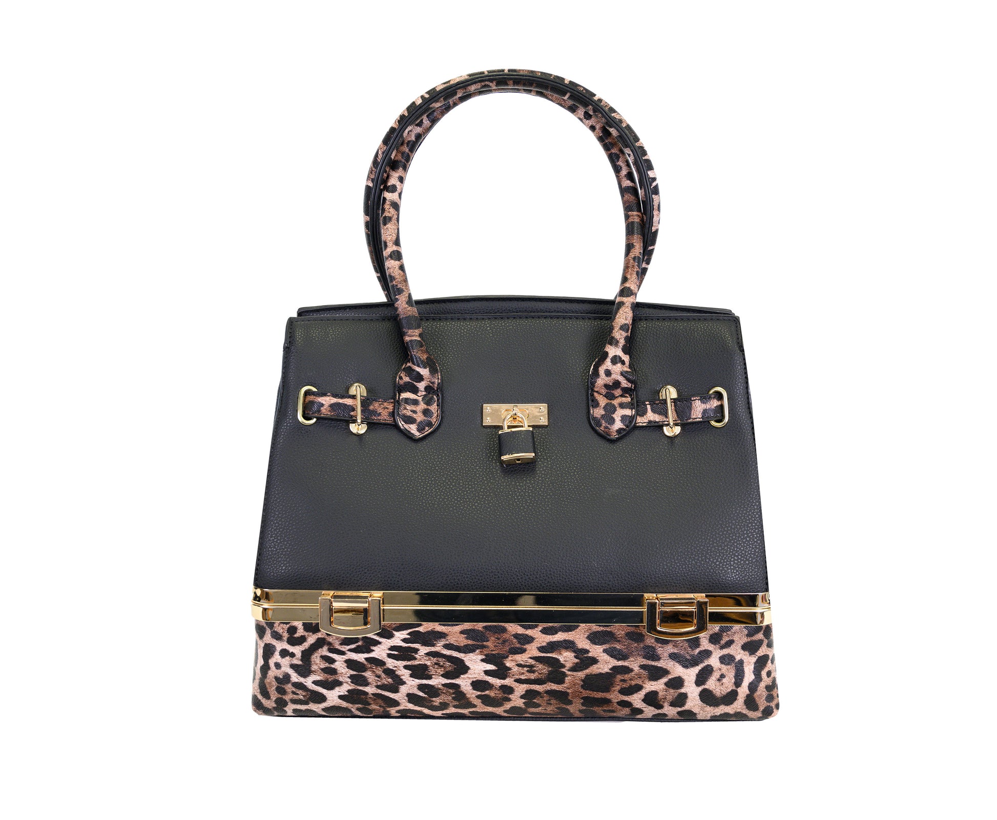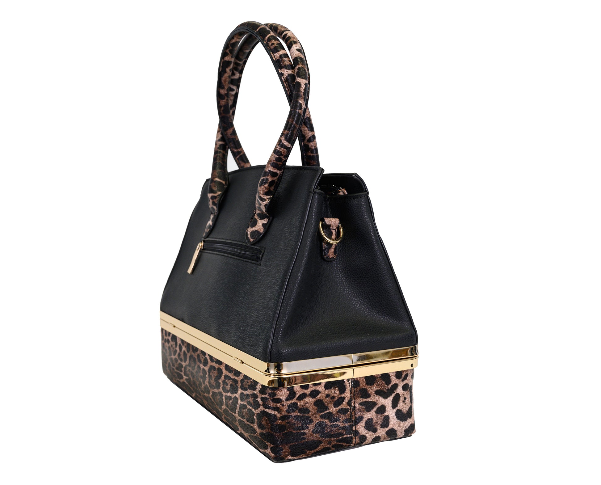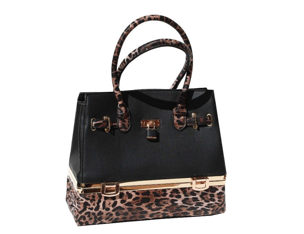 • Vegan Leather. Black/Leopard Handbag.