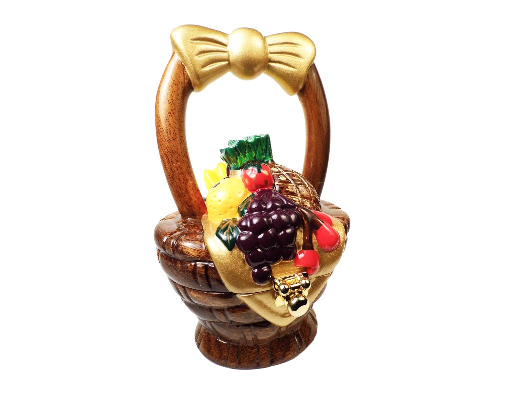 Experience true luxury with our exquisite Picnic Art To Wear handbag. Expertly crafted from Acacia Wood and decorated with artisanal fruits, Pineapple, and Grapes, the hand-carved basket showcases a stunning woven pattern in its natural color. Its dimensions of 9 1/2" H x 6" W x 3 3/4" D make it the perfect size for all your essentials. Elevate your style with this exclusive piece of art.