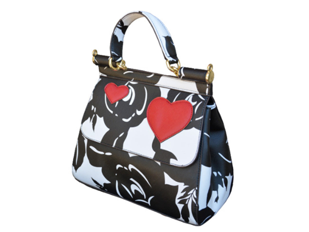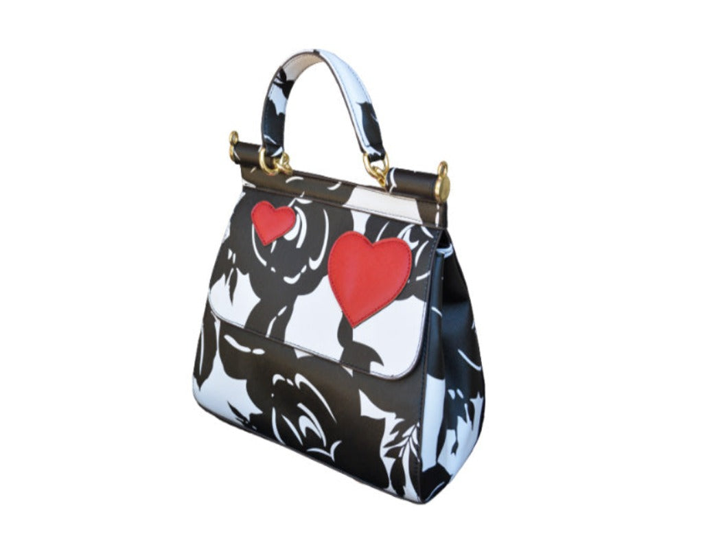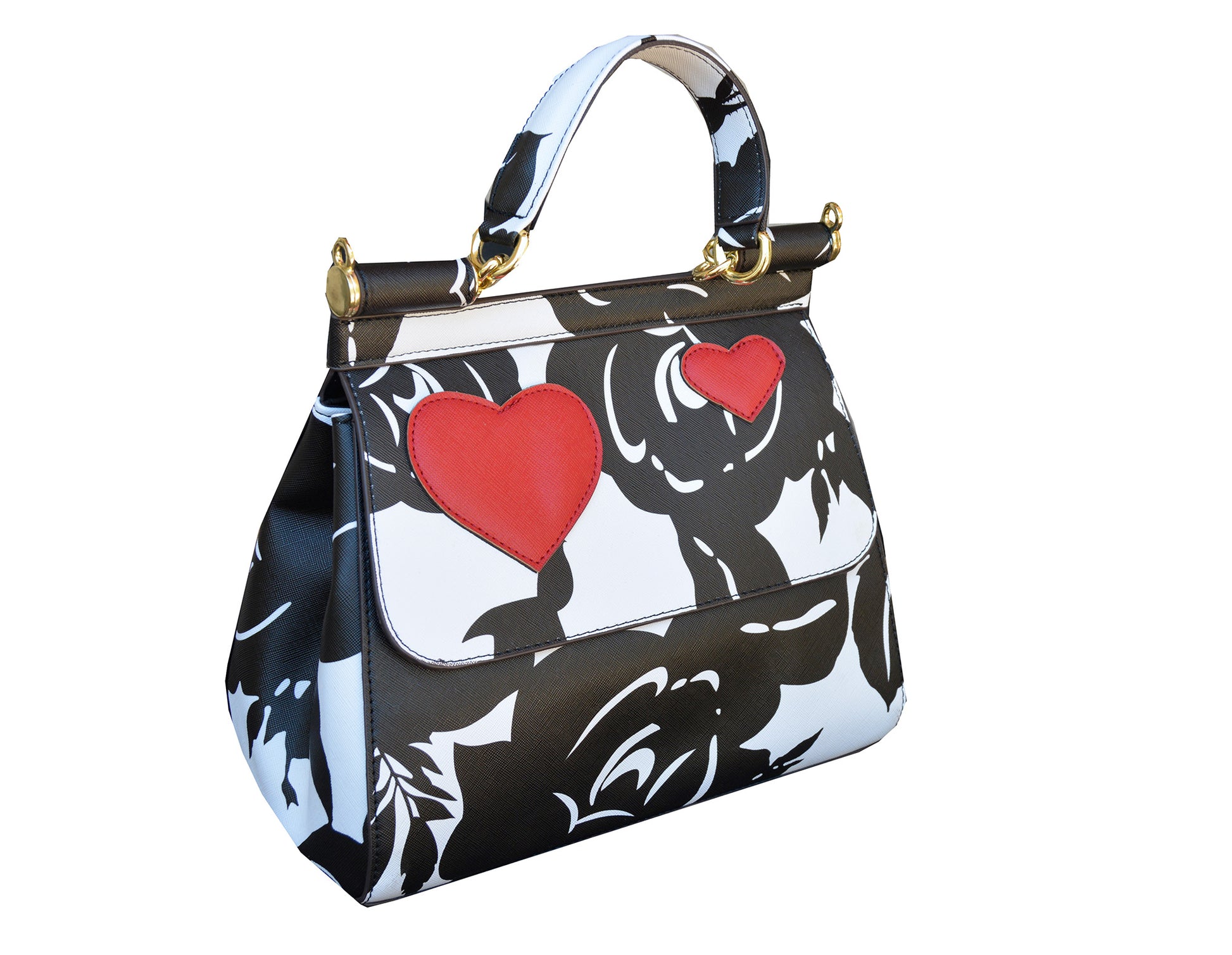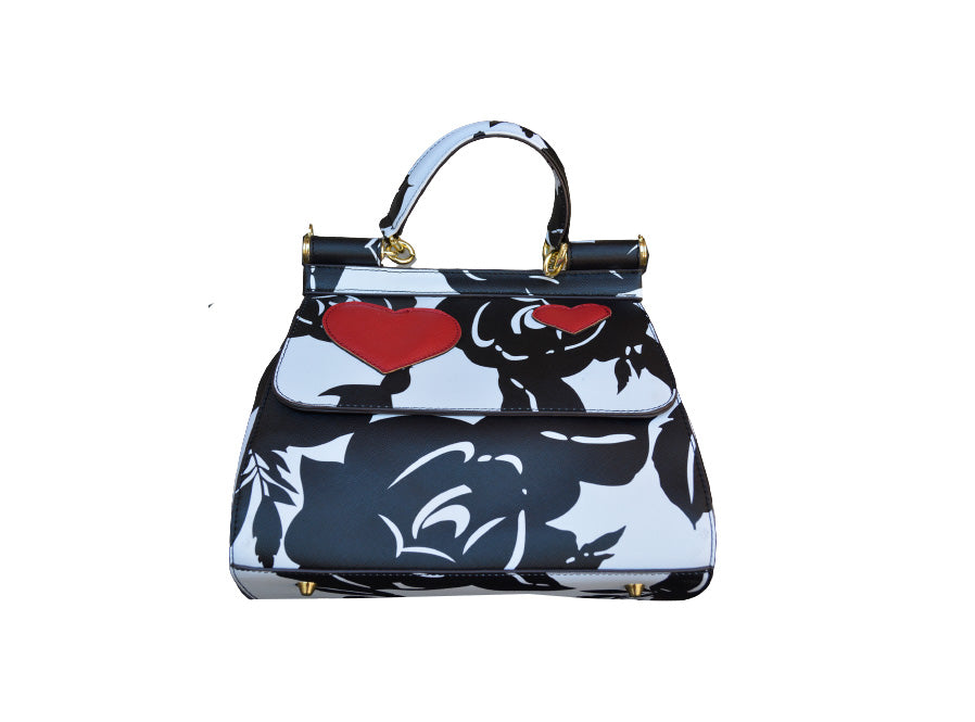 Black and White Vegan Designed Leather Is Not Boring with Loving Red Hearts