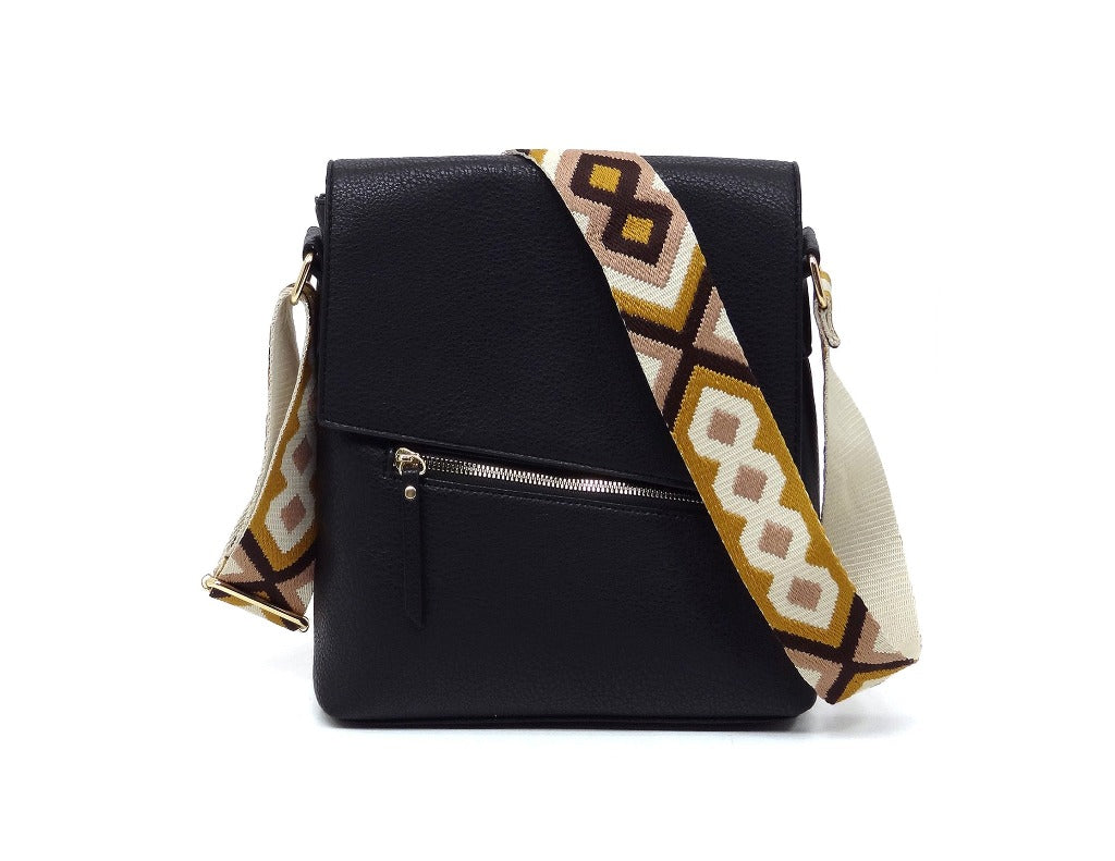 The Shari Black crossbody bag is crafted with vegan leather and features a stylish guitar strap. Details make the difference, and this bag has you covered. Its magnetic snap and zip top closure offer both convenience and security, while its gold-tone hardware and adjustable shoulder strap add function to fashion. Measuring 11" H x 10" W x 5" D, it's perfectly sized for all your essentials.