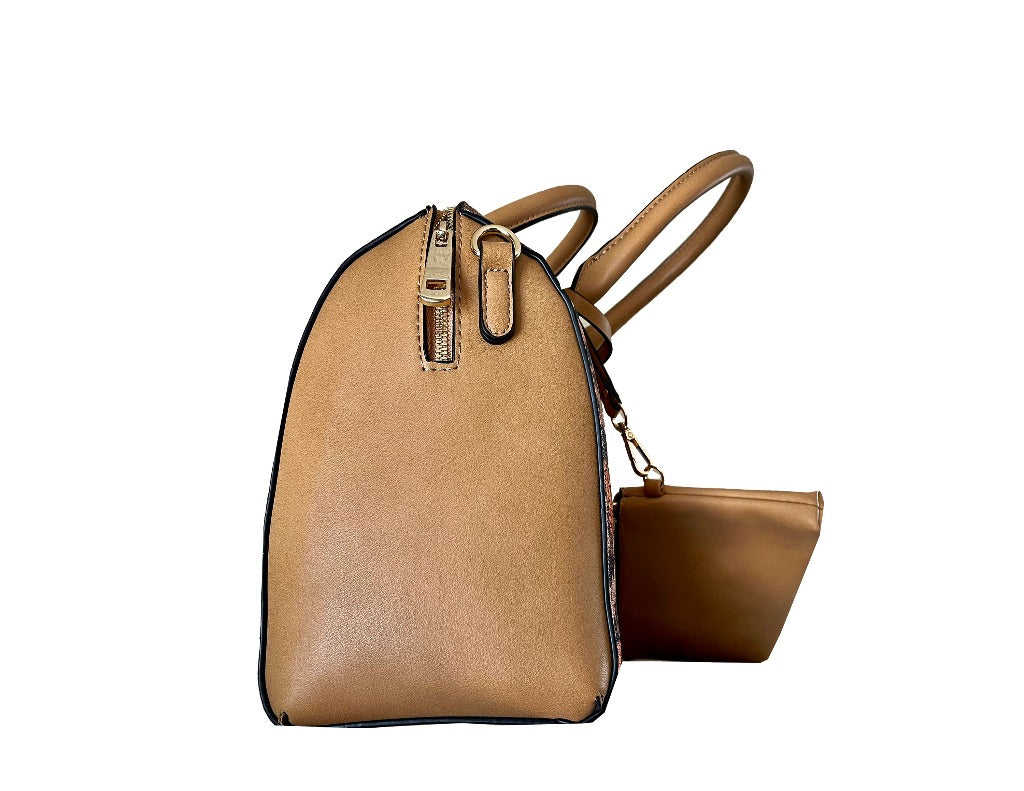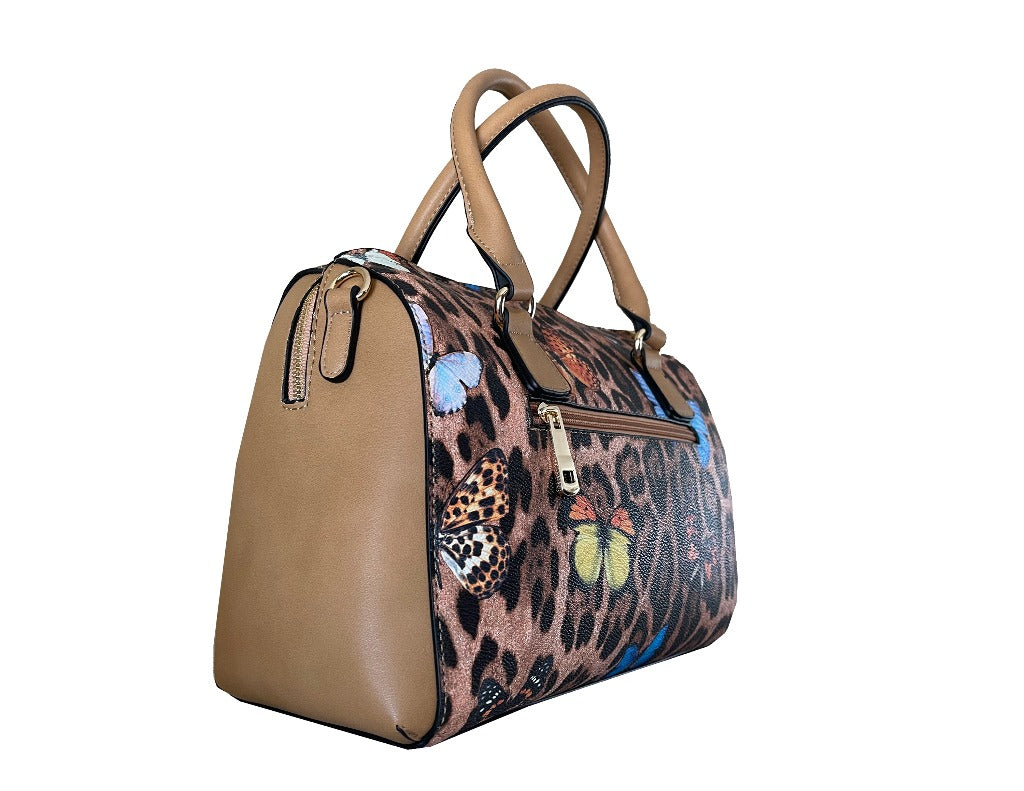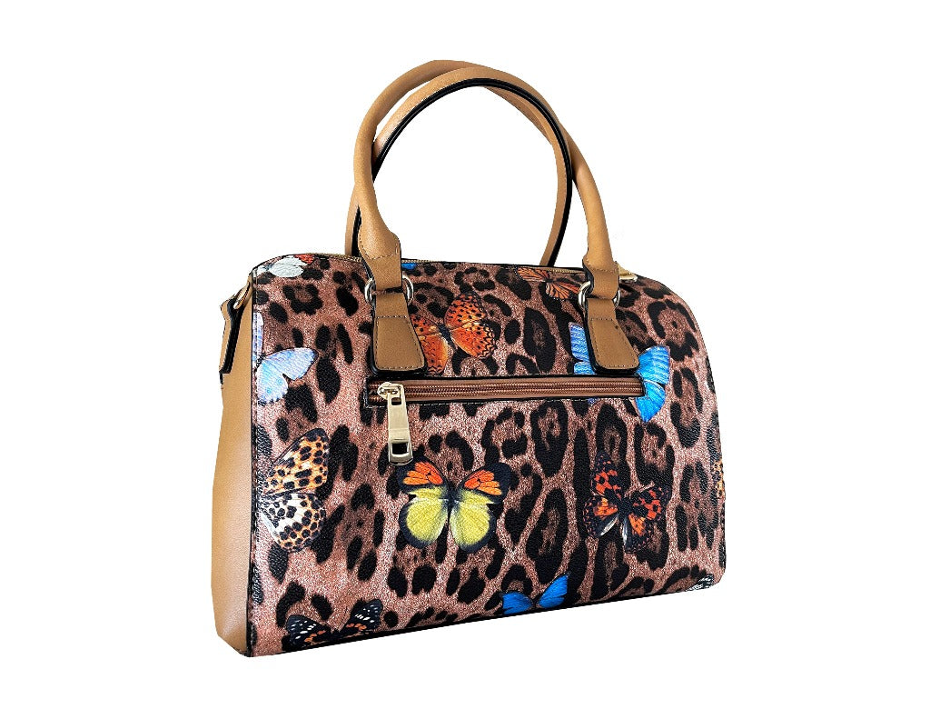 Tan/Leopard Vegan Leather Shoulder Tote with Butterflies.