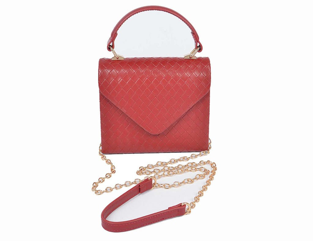 Sophia-Burgundy- Braided Pattern Vegan Leather Cross Body Bag.