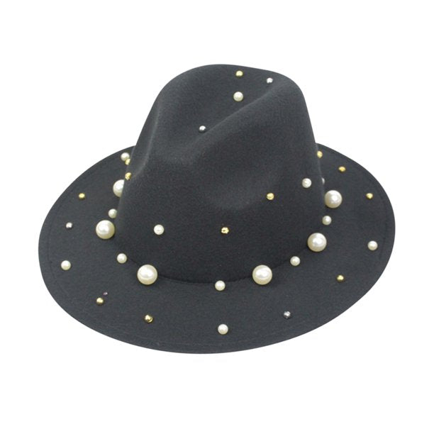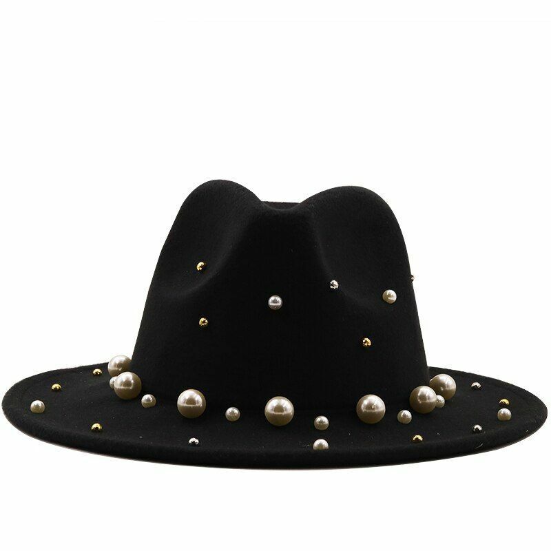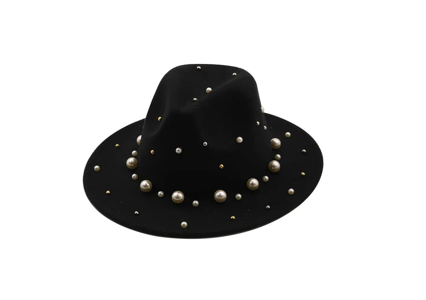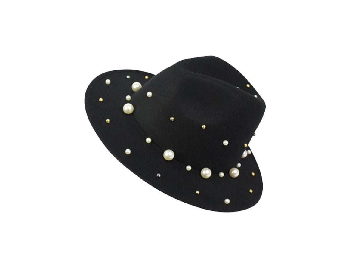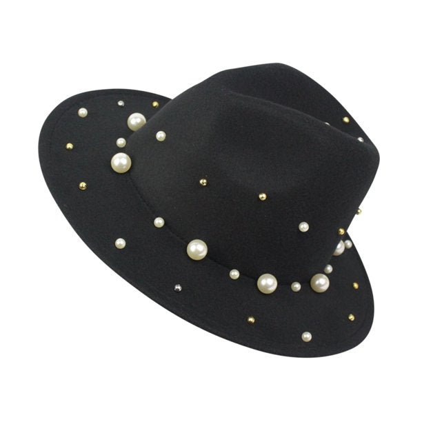 Timmy Woods Women’s Fashion black Hat with Faux Pearl Embellishments.