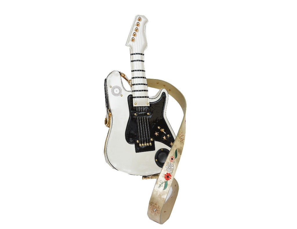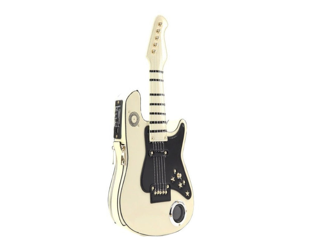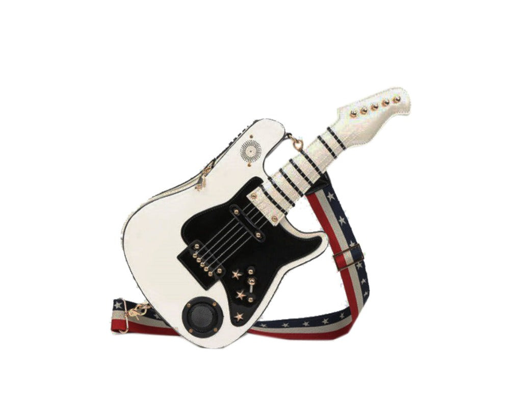White/Black Guitar Shaped Shoulder Bags Multimedia Bluetooth/Speaker.