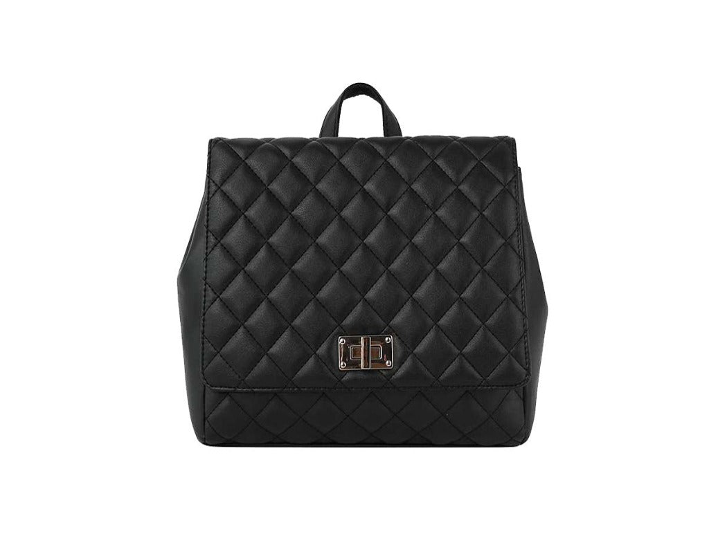 Super Fashionable Black Vegan Leather Convertible Handbag/Backpack with Diamond Pattern Quilting.